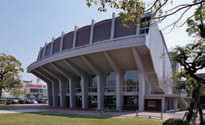 村野の戦後作品には,戦前の『宇部市渡辺翁記念会館』(1937年)のように建築全体をタイルが覆い尽くすような作品は少なくなり,コンクリートとの組み合わせを積極的に展開している。『米子市公会堂』(1958年,写真-4)では打ち放しコンクリートの柱と梁に対し,ボーダーの枠組みを伴ったタイルが使われているが,『世界平和記念聖堂』で採用した煉瓦の延長上にタイルが位置付けられていることがわかる。この手法は『横浜市庁舎』(1959年)や『関西大学図書館(現 簡文館)』(1955年),そして『早稲田大学文学部校舎』(1962年)などに継承されている。