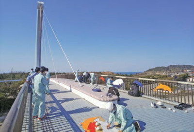 島根県立石見海浜公園内にある斜張橋(片持ち式)「はっしータワー」に工夫しひと味加えることで、人を呼び込み観光地へ誘導する試みとして、しまね海洋館アクアスのシロイルカにちなみ、イルカプレートを高欄部に取り付け、新たなSNS映えスポットを作る企画を行いました(写真-5(1)、(2))。
