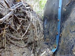 ルートブロック工法は、根の侵入を防止するために高密度ポリエチレンシートを地...