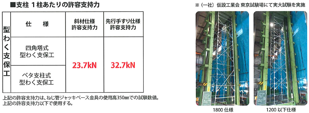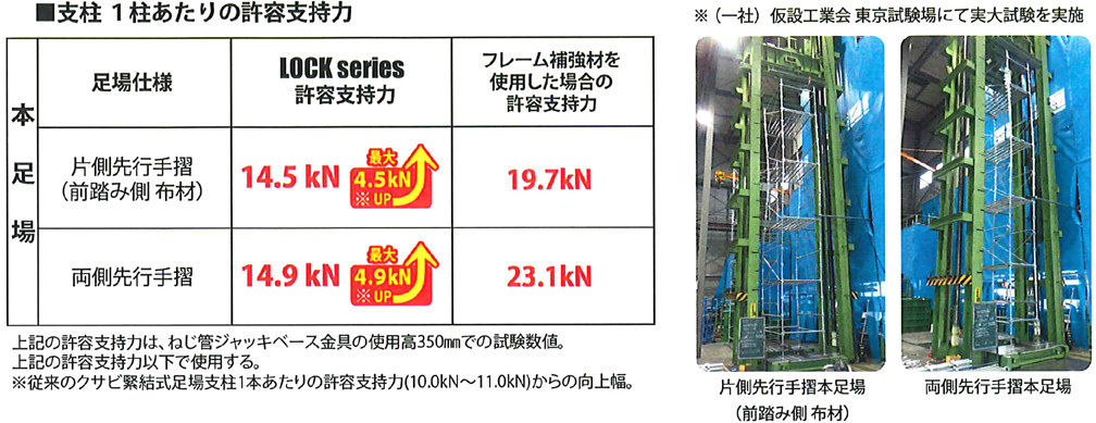 - 高層化する足場にも対応可能な許容支持力と耐久性