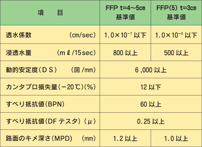 「フル・ファンクション・ペーブ」の代表的な基準値は、以下に示す通りである。
