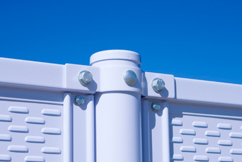 「Jブラインド」は超軽量パネル、片側施工が可能な新型目かくしフェンスである。