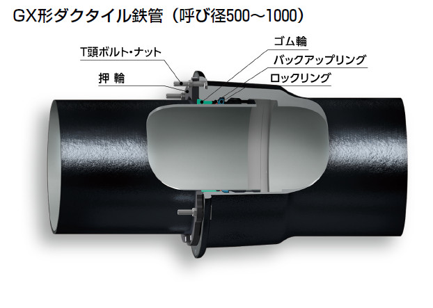 GX形ダクタイル鉄管(呼び径500~1000)は、メタルタッチ構造を採用し、トルク管理や面間距離管理が不要で、簡単かつ確実な施工管理を実現。