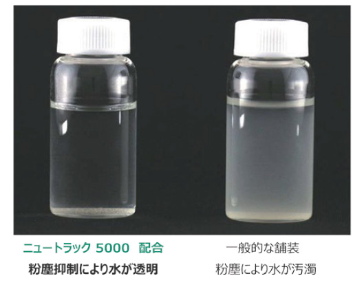 また、本製品を配合したアスファルト舗装は経年劣化により発生するアスファルト摩耗粉を約80%低減させることが可能である。