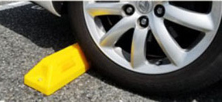 軽量で耐久性、固定強度にも優れた車止め。大型乗用車にて50回以上の車両乗り越え実験を実施済み。