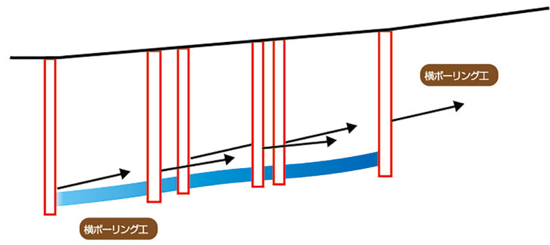 地すべりや液状化現象を抑制する効果的な方法は、地下水位を下げ、水による影響を排除することである。