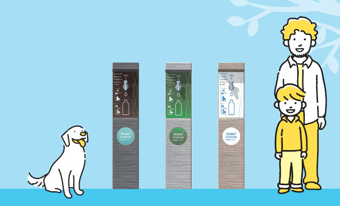 公園や街の中に設置されたWater Station(ウォーターステーション)で、きれいでおいしい水をマイボトルに補給するという、サステナブルな新しい生活スタイルを提案している。