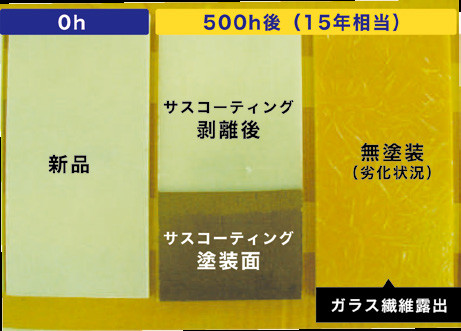 サスコーティングは特殊樹脂を使用したステンレスコーティングである。