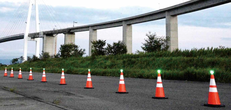 24時間発光することで、日中の規制でもドライバーに対し高い視認性を発揮できる。