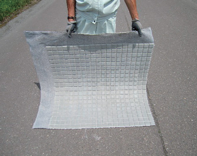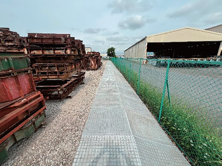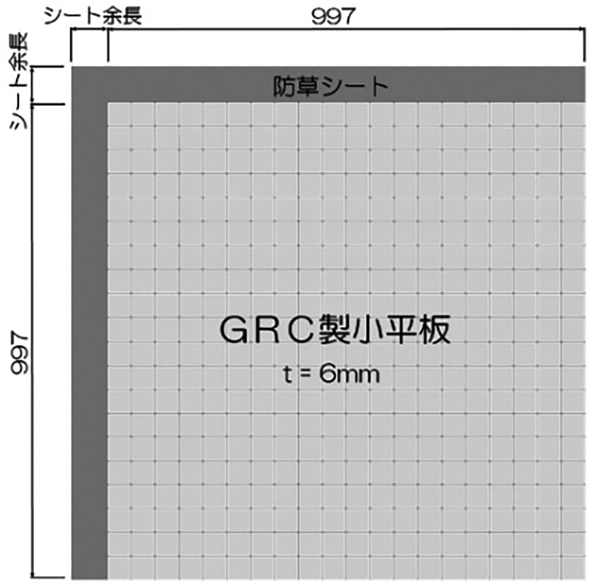 マルチマットは、高性能防草シートと厚さ6㎜のGRC製小平板を一体化したハイブリッド防草マットで耐久性、屈撓性、防火機能を兼ね備えた複合製品である。