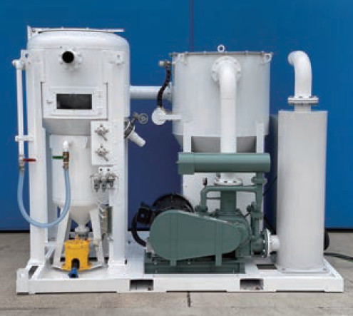 (1.0Mpa)で運転し、研削材の循環再利用を可能とした技術である。ブラストシステム運転用の圧縮空気を高圧で使用することにより、従来では施工困難な遠距離の施工に対応している。研削材を循環再利用することで産業廃棄物発生量の削減ができ、経済性や工期短縮が期待できる。