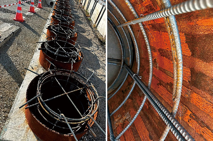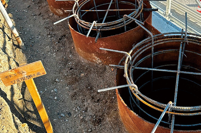 本工法を活用することで、フーチング鉄筋の施工後に杭頭補強鉄筋の配筋ができるため、補強筋の確実性と施工性の向上、工期短縮を実現する。