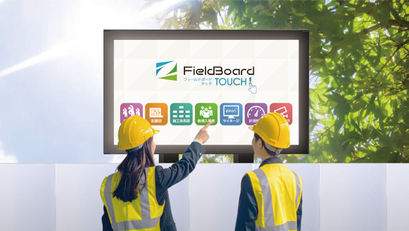 フィールドボードは、LEDビジョンや液晶モニターなどの表示機を用い、現場内の掲示物をデジタル化する建設現場向けのデジタル配信システム。