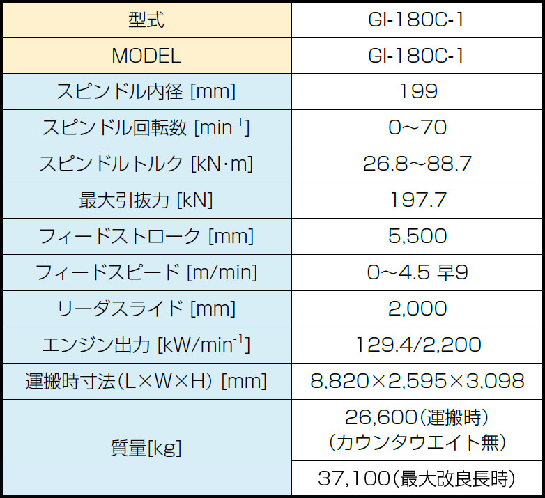 柱状改良工事の施工機「GIシリーズ」に、新たにGI-180C-1が加わった。