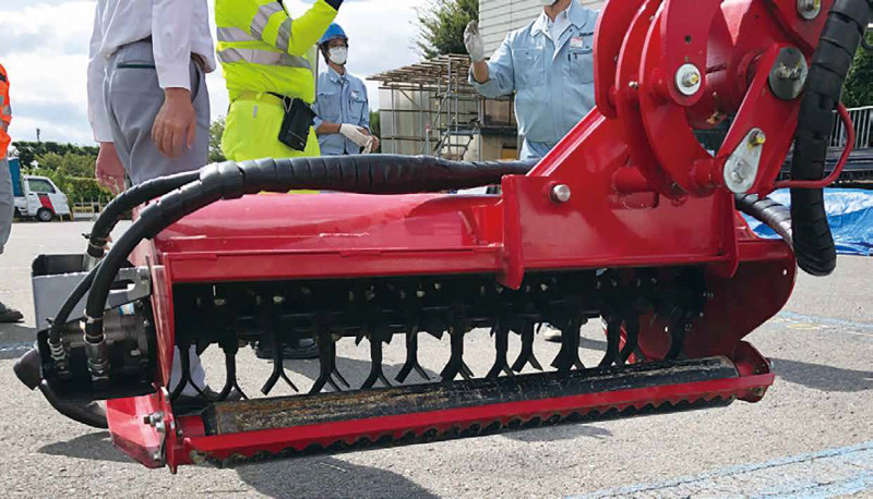 ガードレールなど支柱際の草刈りに最適なタイプと、広い刈幅で法面に最適なブームモアタイプの2種があり、高速道路・道路沿いの草刈はトラックに積載式の草刈機で作業し、使わない時は草刈機を降ろすことも可能。