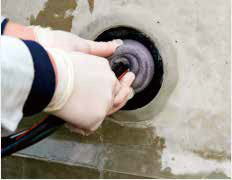 ②ミズストッパーを漏水箇所に詰めていく