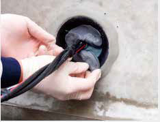 硬化しない素材のため、簡単に撤去や再充填ができ、将来の電線追加なども問題ない。