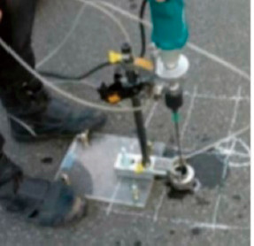 3.床版コンクリートの舗装上面からの調査や治具を真空吸着させて床版下面から上面に向けての穿孔、または補強鋼板下面からの調査も可能
