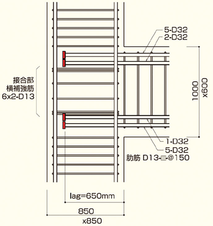 曲げフックが不要なため、パネルゾーンの配筋が簡略化され、施工能率の向上が期待できる。