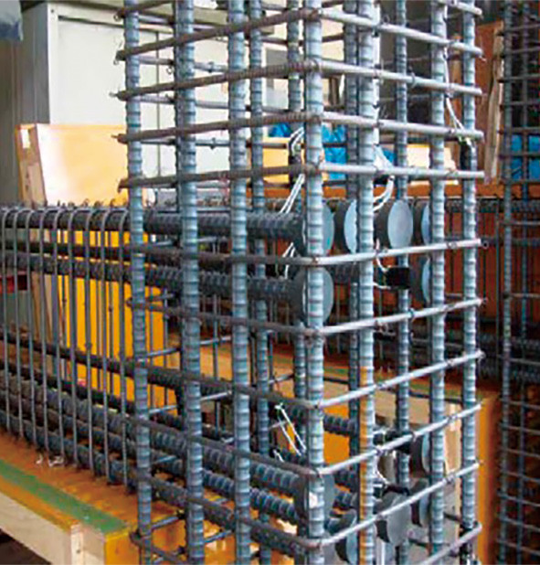片端プレート型で施工困難な高過密配筋の箇所でも施工を可能とした両端矩形プレート型のせん断補強鉄筋。
