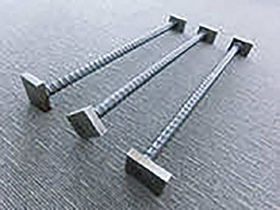せん断補強工法に用いる同製品は、矩形または円形のプレートを鉄筋端部に摩擦圧接接合した鉄筋である。