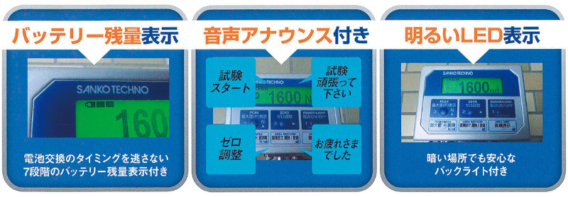 小型・軽量設計で、操作手順もボタン上に数字で印字されているため、誰でも手軽に正確な引張試験を行うことができる。