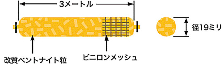 | 材質(中) | 半練ペースト状ベントナイト 膨張率:25ml/ 2g以上 pH:9.5~11.0 重量:7±1g |