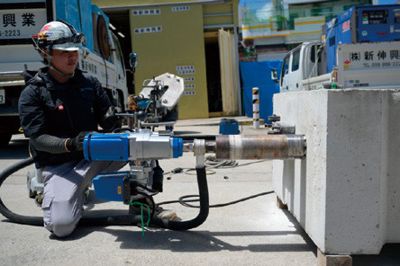 新伸興業では硬度の高い工業用ダイヤモンドを使用した工具による「ダイヤモンド工法」、超高圧水により鉄筋や鉄骨に損傷を与えずに選択的にコンクリート部を除去可能な