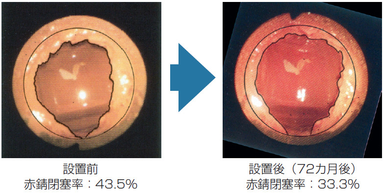 ●内視鏡観察による給水配管内の赤錆閉塞率比較