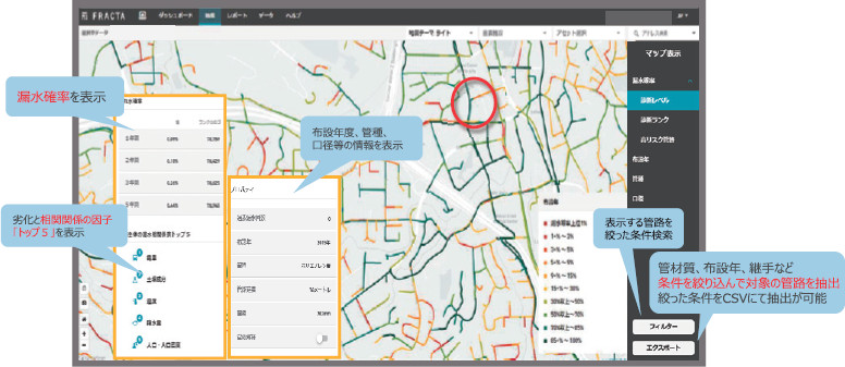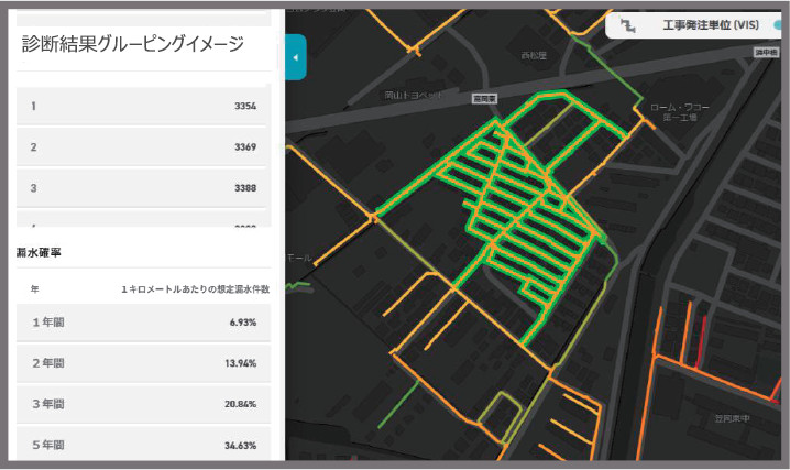 これにより更新投資の最適化、漏水調査時のエリア選定などの活用が期待できる。