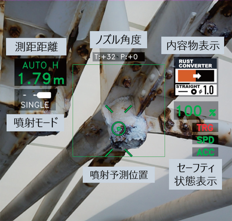 | 噴射作業補助機能 | 噴射モード機能(単射・連続・連射) 到達位置予測・残量予測機能 風向検知機能 |