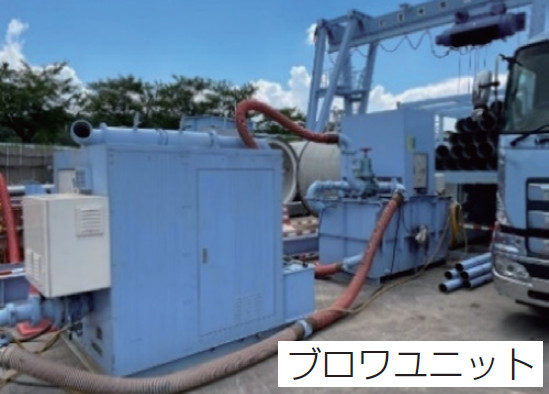 本工法では、圧気工法により杭内へ気圧を掛け、地下水や土砂の流入を防ぎながら障害物の撤去が可能。
