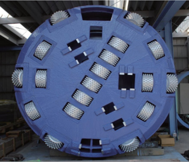 掘進機隔壁の中央部に大きな点検扉を設け、機内からのビット損耗状態の点検と交換を容易とした。
