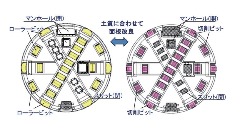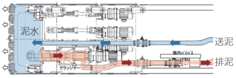 - 面板加圧と泥水加圧の併用で切羽・地山の安定を図る