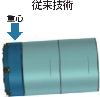 ・掘進機の前方にあった重心を中央付近へ配置したことで、ノーズダウンが軽減し、バランスの取れた掘進ができる。