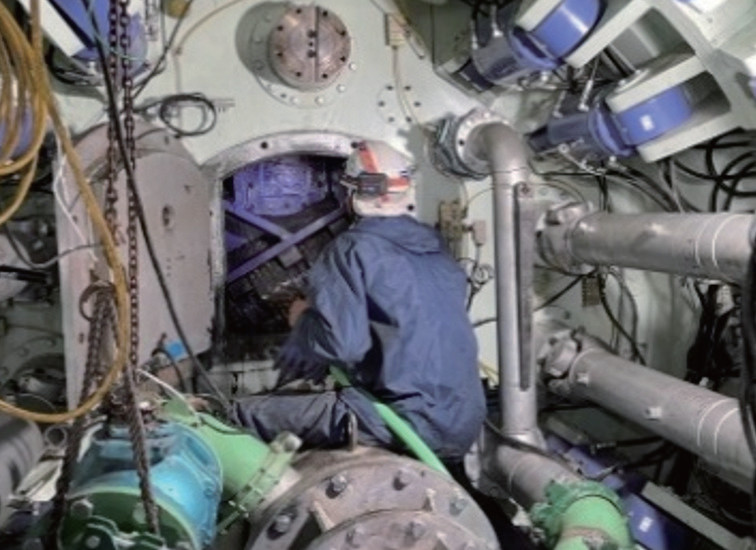 撤去作業は、面板に守られたカッター内部から行うため、地山に露出されることなく作業者の安全が確保できる。
