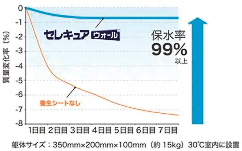 「セレキュアウォール」は、垂直面や天面に対応したコンクリート保湿保水シートである。