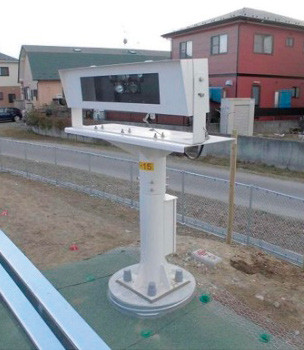 | 経済性 | 新技術では低位置に設置するため、イニシャルコストに加え材料費も安価で、高所作業車等を使わなくても設置可能。消費電力が少なく省エネルギーである。 |