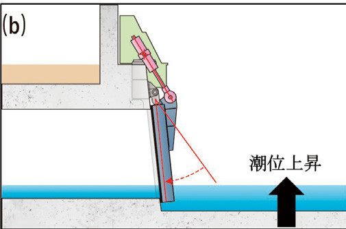 これらの課題を解決するため、無動力・無人操作を実現する低水位時開放型フラップゲートを開発した。