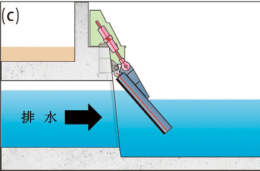 なお、支川からの排水に対する自動開作動は常時可能であり、開放保持を行うことでごみの噛み込みを防止することが可能。