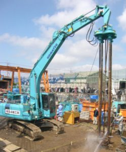 「LIM工法」はセメント系固化材を、改良を目的とする地盤に粉状で散布。 バックホーの先端に取り付けた、粉体混合撹拌機で改良対象深度まで混合撹拌させ、現場土とセメント系固化材を均一に混合し、...