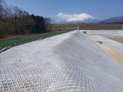 「ロックル」は、胴込コンクリートが不要な1.0m2/個の大型ブロック張で、従来工法は間知ブロック張で対応していた。ブロックの大型化、胴込コンクリートの打設不要により工期短縮が可能である。