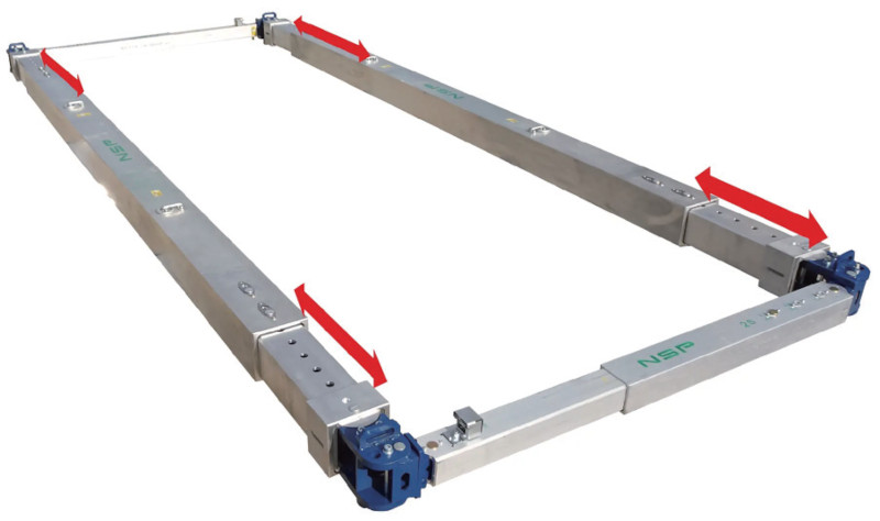 「四面梁4型腹起し 480-700」「四面梁5型腹起し 630-850」は、矢板設計の開削工事で使用する土留機材。腹起し材(アルミ腹起し)に切梁材を内蔵しており、四面(四方向)同時に土留を設置することができる。従来の妻方向・桁方向別々に支保工を設置する手法と比べ、設置時の安全性向上が期待できるほか、開口面積に制約を受ける場所でも作業スペースを広く取れるというメリットがある。