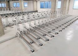 省スペースのために開発した最小ピッチの自転車駐車設備。施錠状態で収納できる機構を採用。(KR-3型を除く)片側乗り入れ式や両側乗り入れ式の設置ができ市街地や人が多く出入りする場所に効果を発揮。
