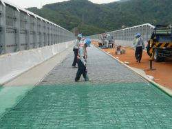 PC-Rev工法は、既設PC構造物に対するグラウト再注入工法。1)シース検知型の小径削孔 2)シース内の空洞量推定 3)切換え式グラウトの注入方法 4)防錆型グラウト材 5)自動施工システム等の特徴があり、超低振動ドリルを用いるなど、従来の方法より既設構造物への負荷を低減しつつ、精度よく空洞量を把握することで、適切な注入管理を行う。負圧と加圧を利用しグラウトの充填性を高め、グラウト材によってPC鋼材の腐食も抑制できる。