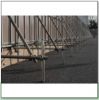 くい丸は鋼質製の杭で、従来は単管パイプを杭代わりに使用していた。くい丸の活用に上り、施工スピードの向上、難地盤への施工が可能で、また耐久性の向上により繰り返し使用可能である。