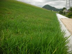 「ヌノピタ」は、自立構造式の大型積みブロック(0.5個/m2)と基礎ブロックおよび延長調整用パネルの製品技術である。ブロックは、相互が凹凸状に咬み合って容易に位置決めでき、控えが水平状態で5分勾配に自立する構造で勾配が定まりやすい。また基礎コンクリート、天端や延長の調整部分に用いる壁面型枠のプレキャスト化で施工性が向上する。ブロック表面は、明度6以下・輝度の標準偏差11以上で、周囲の自然景観に良くなじむ。