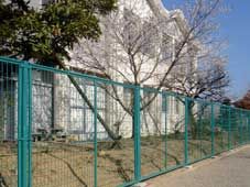 | 柵高1500mm 両開 開口幅2000mm 金網:樹脂塗装 支柱:樹脂塗装 |