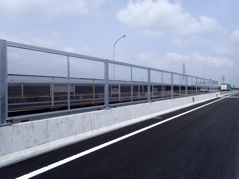 「長耐久ガラスコーティング透明板」は、遮音壁で用いる透光性遮音板であり、従来はポリカ―ボネート透光遮音板(共押し製法)を使用していた。本製品は、その材料の表面に特殊な長耐久ガラスコーティングを施し、耐候性を向上させ、製品寿命を2倍以上に向上させることが可能となり、LCCの向上が期待できる技術である。
