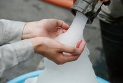 可搬式特殊堤防「デルタチューブ(三角水のう)」は、遮水性の高いシートを用いて製作した三角形の長い袋体を堤体の上に伸ばして敷設し、その後袋体の中に水を注入することで堤防からの越水を防止する、これまでの土のうに代わる水防ツールである。折り畳んで収納・移動ができる軽量さと、迅速に設置できる簡易性、そして越水や浸水を防ぐ水密性を兼ね備えたモバイルレビーである。